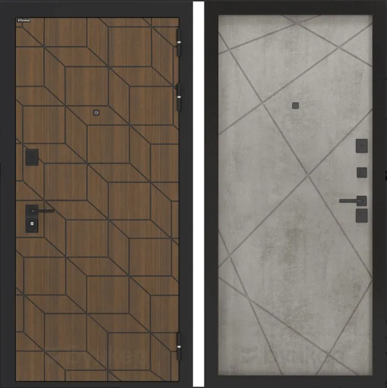 Черная матовая: Броненакладкая, сувальдные накладки со шторкой, ручка, ночник, цилиндр ключ-вертушка, глазок по центру или сбоку